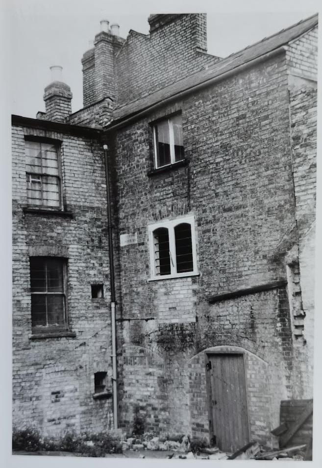 Caroline Place, April 1974. This is a building on the east side. The stone block on the corner of the walls reads "J Clutton March 11 1861".1913