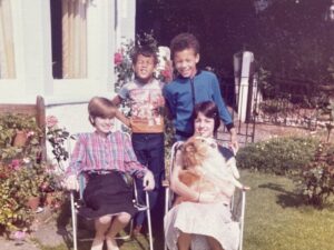 holding Julian, Lucy and Penny, holding baby Marcus who had just come out of hospital. November 1971.“I was two and my sister, Lucy, was one when our mum, Lorna, married my step father, Albert Gordon, in 1969. Lucy and I grew up calling our step father dad. Dad had come to England from Jamaica on the 14 April 1960.