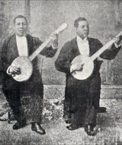 Mr Will Crowson gave a demonstration of what can be done with the aid of the bones, and Messrs Harley and De Marr, pantomimists and acrobats, afforded a highly diverting interlude, rendered all the more novel by the perfect silence the performers maintain during their occupation on the platform. Mr James D Bohee next played a popular march on the banjo, an instrument so often condemned as unmusical. We only advise those who hold this opinion to go hear The “Royal Bohee” and we feel convinced that they will change their opinion. Perhaps Mr Bohee showed his skill the more in his rendering of “Home sweet home” with variations which afforded more scope for his fingers to bring out the effects of light and shade, the soft passages seeming to whisper the air amid the silence of the room, and the crashing notes of the fortissimo resounding loudly above the accompaniment of the full orchestra. Needless to say, Mr Bohee was recalled on every occasion. The Bros Melrose were successful as vocal comedians, and Mr Wal Robbins scored greatly in his black and white sketch. The programme was brought to a conclusion by a new sketch entitled “The Sculptor’s Dream” which included the most realistic pictures of marble statuary, shown off the better by means of lime-light effects. The entertainment will be repeated each night during the week and Friday is to be a grand plantation night.