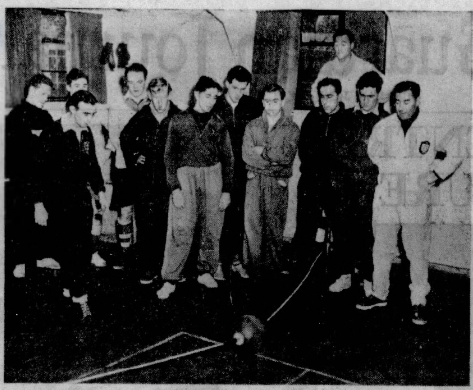 Front row: presenter, Pete Reele, John Pocock, Frank Wilson, unknown, Bob Thurley