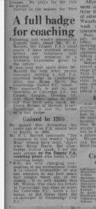 Frank Wilson was also a fully qualified F.A. coach, a qualification he gained in 1955, as shown in this [undated] press cutting.