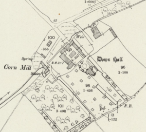 In ‘Greater Medieval House of England and Wales’: Downhall Manor is a fine example of an isolated but protected farmstead … the manor house was replaced in the C16th by the present timber-framed farmhouse. The gatehouse can be dated to c.1300 and makes it a rare survival of a once common feature.
