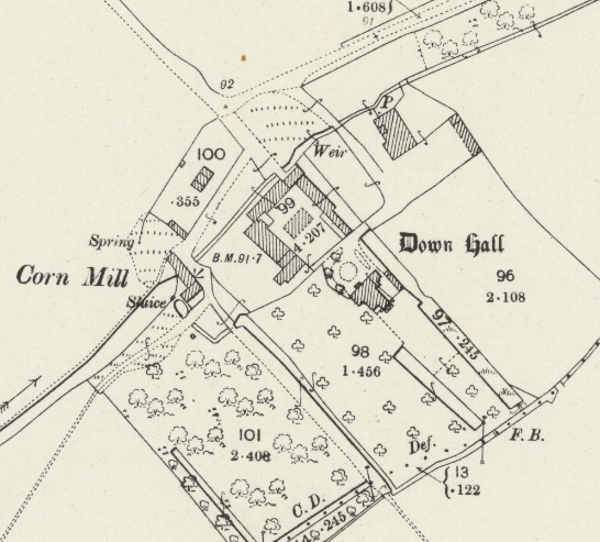 Gatehouse. Early C16. Timber-framed with plastered infill. Plain tiled roof with octagonal lantern. Two storeys with first floor jetties on two sides…. The gatehouse is situated within the moated site of Down Hall.