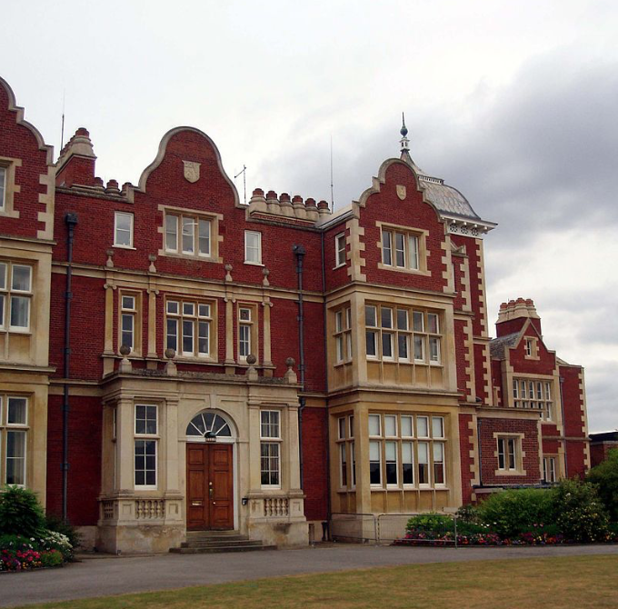 Babraham HallCountry house. 1832-33 by Philip Hardwick (1792-1870), for H.J. Adeane, Jacobean revival style with additions and alterations in 1864 and c.1900. Red brick with limestone dressings; slate roofs and metal coverings to tower and corner turret. Three storeys and basement; two storey and attic north-west range. The original building with symmetrical three-gabled facade perhaps encases part of c.1770 building. Extended to south-east by one bay and to north-west beyond north tower by a range including a billiard room, and unified in the garden facade by a loggia-raised over the semi basement.