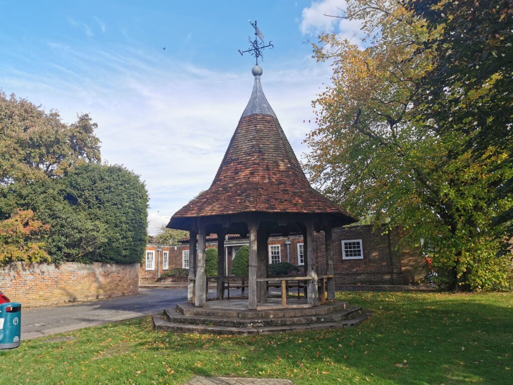 Balsham Village Green (RGL 2022)Balsham – A Village Story 1617 – 2017 says that the shelter was a memorial to William Alfred Prince. William died in 1928 and he left his estate to his sister Anne Ellen, She died in 1931 and left a bequest for a shelter to be built in memory of William to be named the Prince Memorial. William and Anne were the children of Thomas Prince, a Balsham family. William was a solicitor and ended up living in Kensington. Neither he nor his sister married.