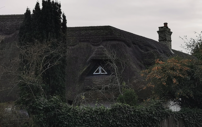 Probably late C17. Timber-framed, roughcast rendered and reed thatch roof, half-hipped.