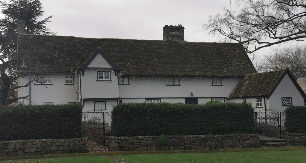 House. c1600 and mid-C17. Small late C17 and C18 additions. Timber-framed, plastered and part pargetted with raised geometrical design, late C17. Tiled roof and ridge stack, C17, of red brick and four flues. Lobby-entry plan and three rooms, now enlarged by C17 and C18 additions.