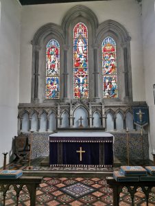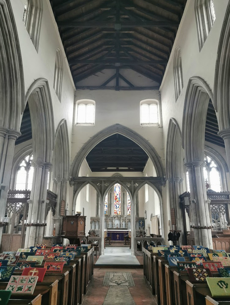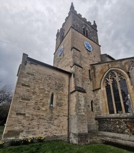 Hugh Rogers’s guide to the church says that there had been an early Norman church at this site; stones of this period can be seen in the tower and parts of the churchyard wall. A C12th coffin lid forms part of a stile in the churchyard wall.