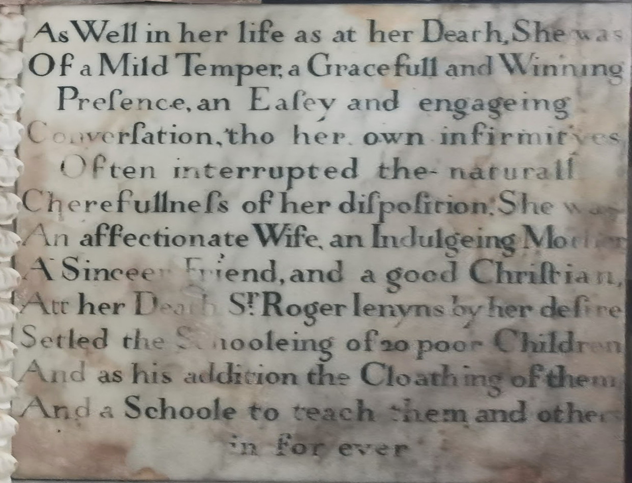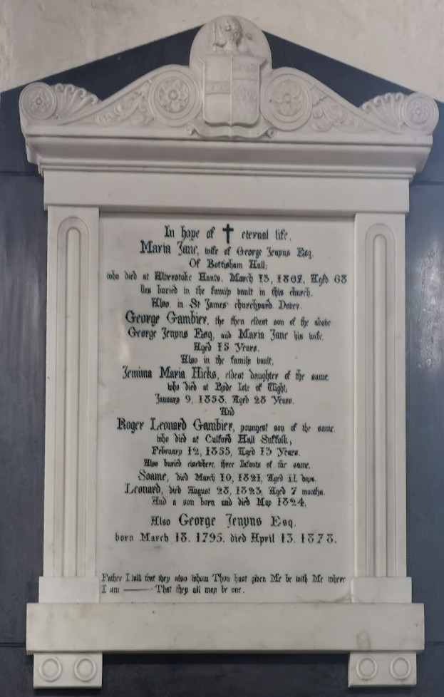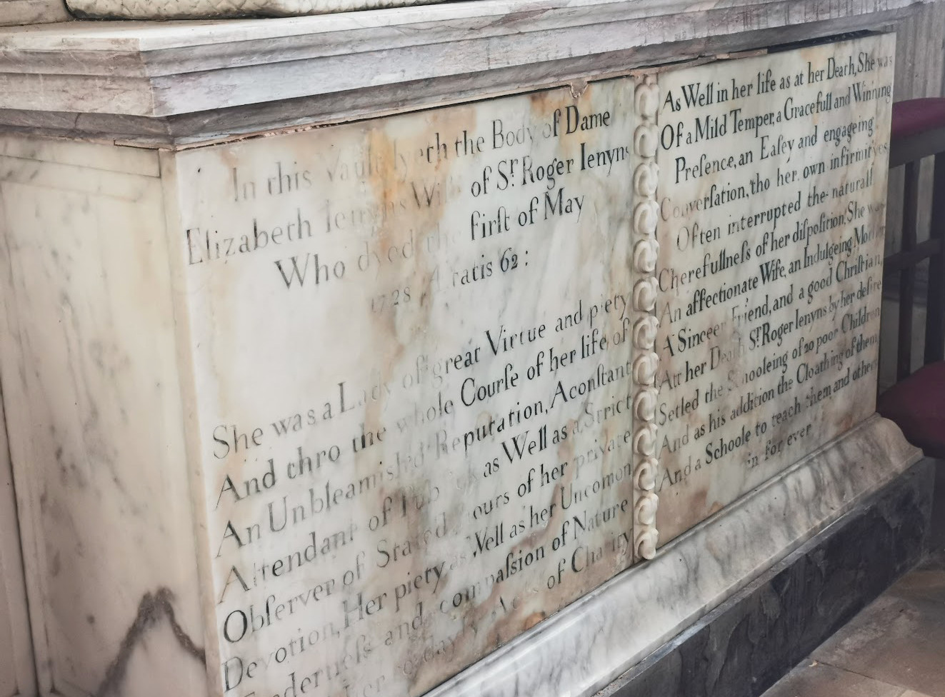 There is  a monument to Sir Roger and Lady Jenyns from 1740 as well as others: the Pledger tomb (1599), and the Allington children (1638).