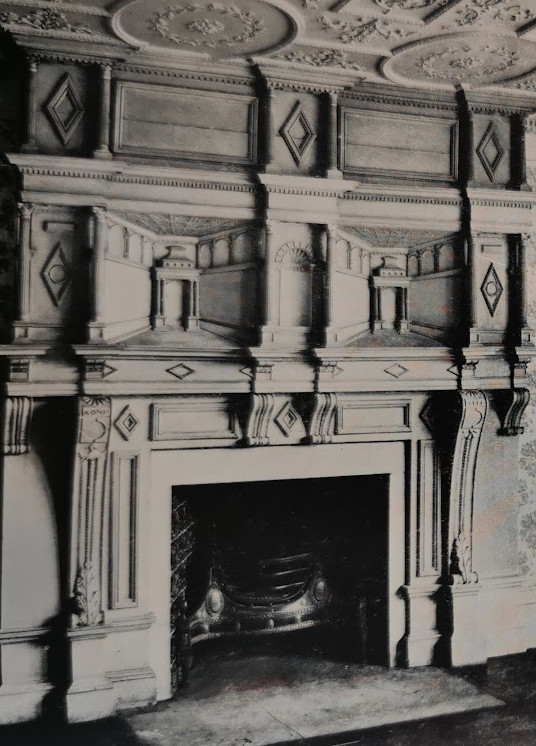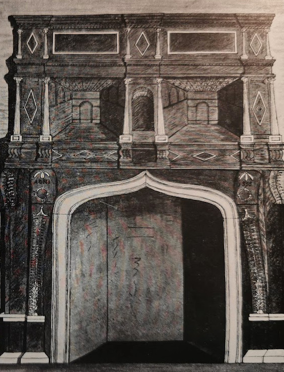 Bourn Hall chimney piece 1555 from Haslingfield Hall (RCHM)