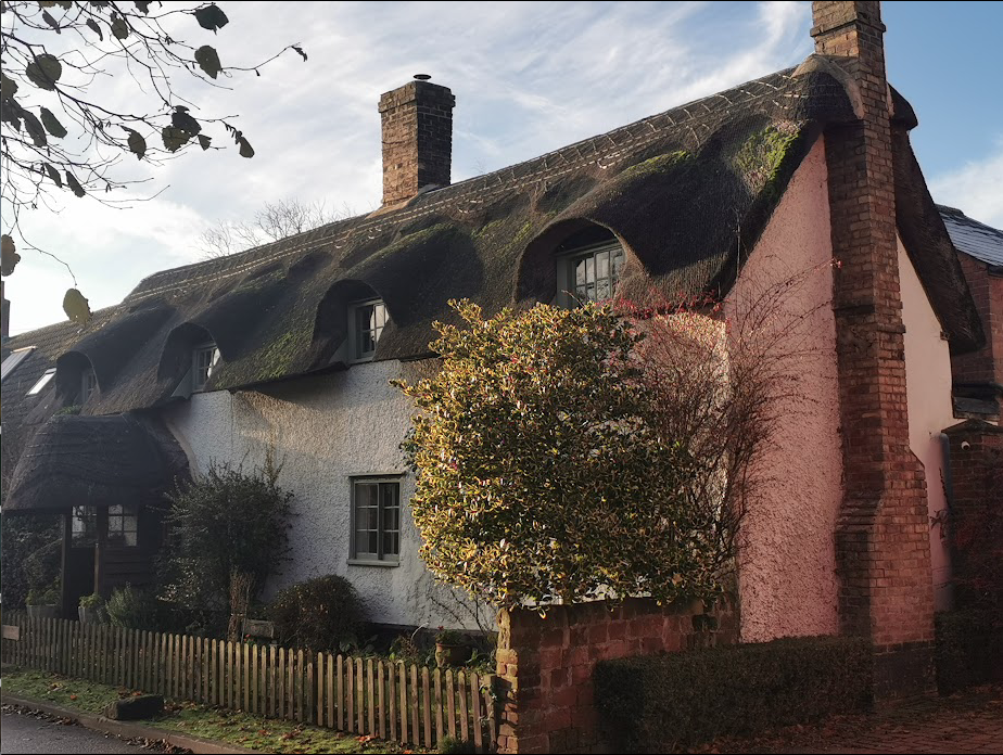 Cottage. Possibly late C17. Timber-framed with rough cast render, thatched roof.