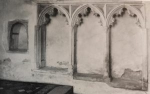 Bourn, piscina and sedilia, late 14th cent. (RCHM)