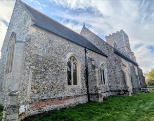 C13 origin. C15 nave and west tower. Restorations of 1850, 1855, 1876-1880 … Monuments: south wall of nave, reset, Thomas Wakefield (1610); Sir James Reynolds (1717) standing wall monument of white and grey marble sarcophagus with pyramid.