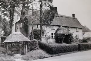 House. Early C17. Timber-framed with roughcast render, thatched roof.