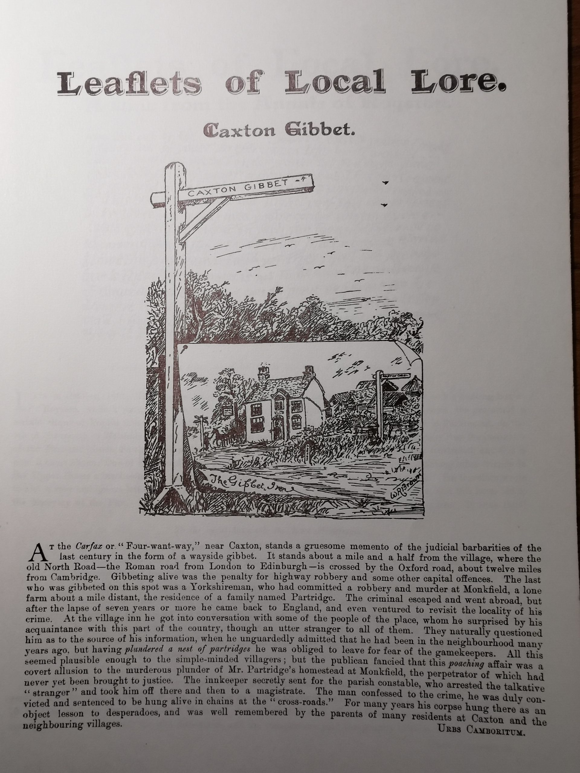 Caxton Gibbet: from Leaflets of Local Lore by Urbs Camboritum (Cambs Collection)
