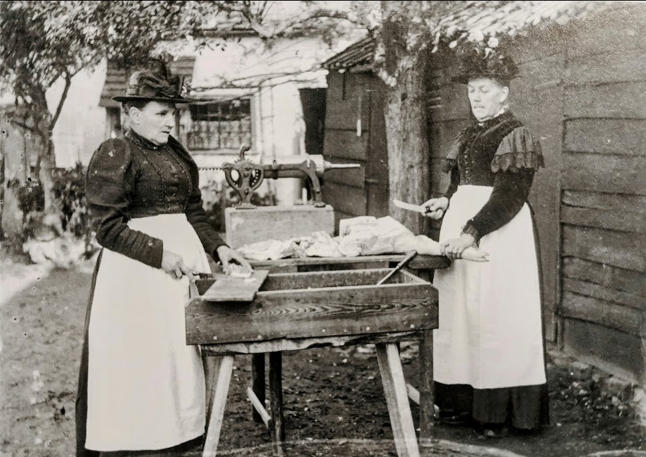 20 Corbett Street, the Chapman sister c1900 (E Smith)According to Cottenham in Focus (2002) Mrs Robert Watson and her sister Mrs Chapman made pork sausages for the Cambridge marker circa 1900. They were usually 9d per pound, but in the smarter areas sold for 10d.