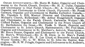 [On April 1st 1893 it was recorded in the press that Arthur Mangelsdorff had been appointed to the position of organist at Carbrooke Watton]