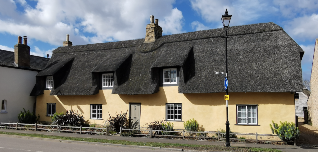 6 High Street CottenhamPair of cottages [10 & 12], now one dwelling late C17. Timber framed, plaster rendered on brick plinth with steeply pitched roof now with corrugated iron but originally thatched. Original gault brick ridge stack and later end and side stacks. Single range plan with lobby entry. Four windows, including one to left hand with leaded lights. Doorway to lobby entry. Interior: Has stop chamfered main beam and abutting inglenook hearths.