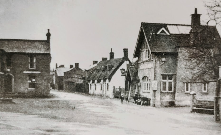 The photo from the 1930s shows from left to right, Cottenham Supply Stores, cottages built by Ellis Munsey after 1801, and the Constitutional Club.