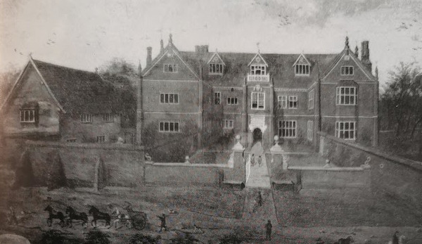 Country house, rebuilt c.1760, dated rainwater heads, for Edward Leeds (d.1803) possibly including part of C16 house. (Historic England)