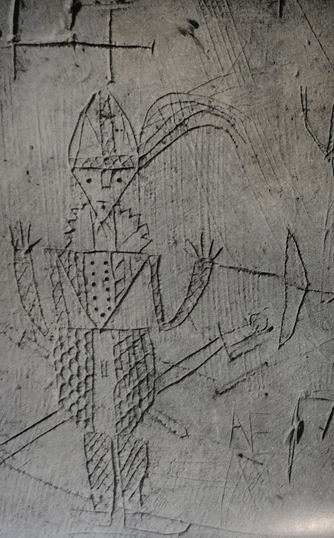 Late 1tth century scratching in tower, Croxton Church (RCHM)