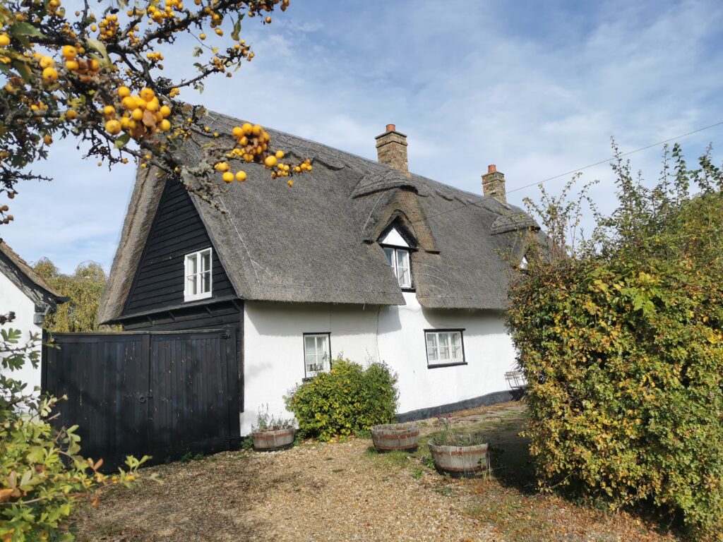Cottage. Late C17 or early C18, extended by one bay probably, late C18. Timber-framed, plaster rendered, and weatherboarded end. … Rent slip for 1757 discovered under the floor for 17/6 per half year.