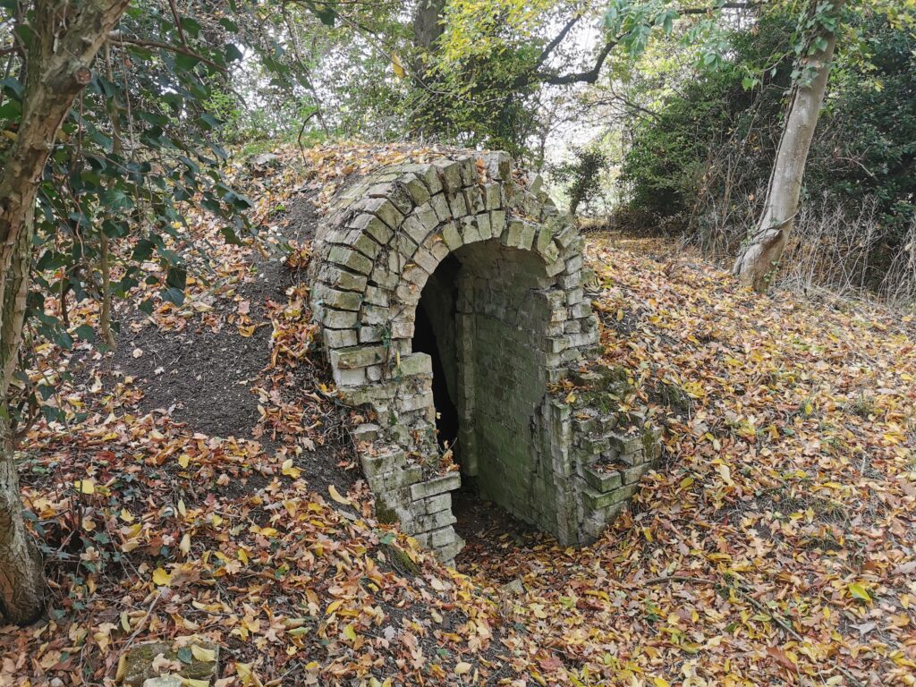Icehouse. c.1830. Gault brick. Round plan with round headed arch to entry.