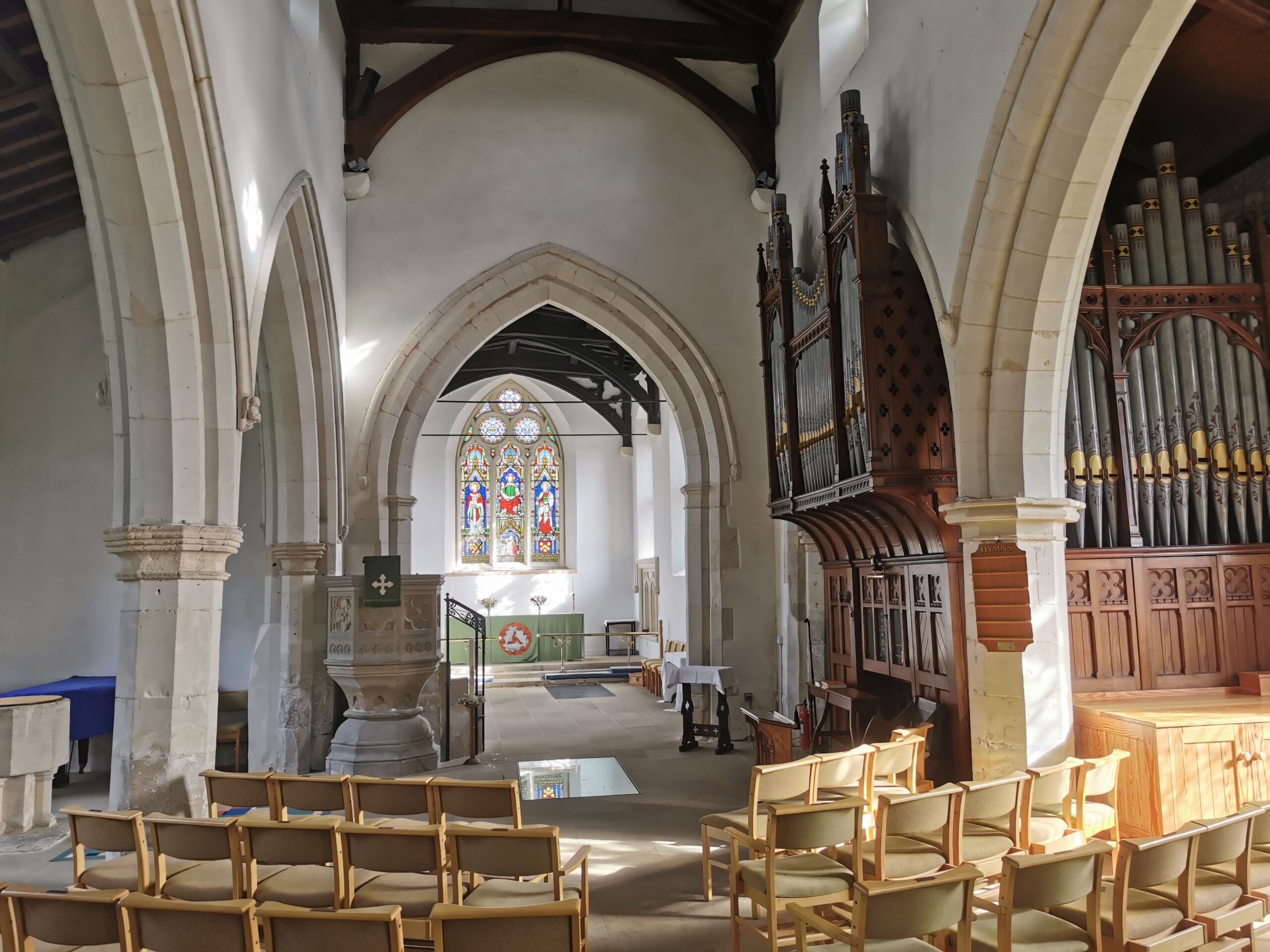 1353 chapel dedicated to St Mary endowed by rector, John de Baston, where organ now stands