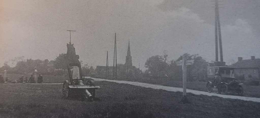 Eltisley Green c.1920Eltisley suffered disproportionate losses during WWI. A Peace Tree was planted in March 1919 with a row of lime trees to the 14 men killed. After the war each village had the opportunity of having on display a gun taken from the Germans but it was constantly being tipped onto its barrel. The village green is home to the Eltisley Cricket Club established in the 1850s. (See Vanishing Cambridgeshire p.103)