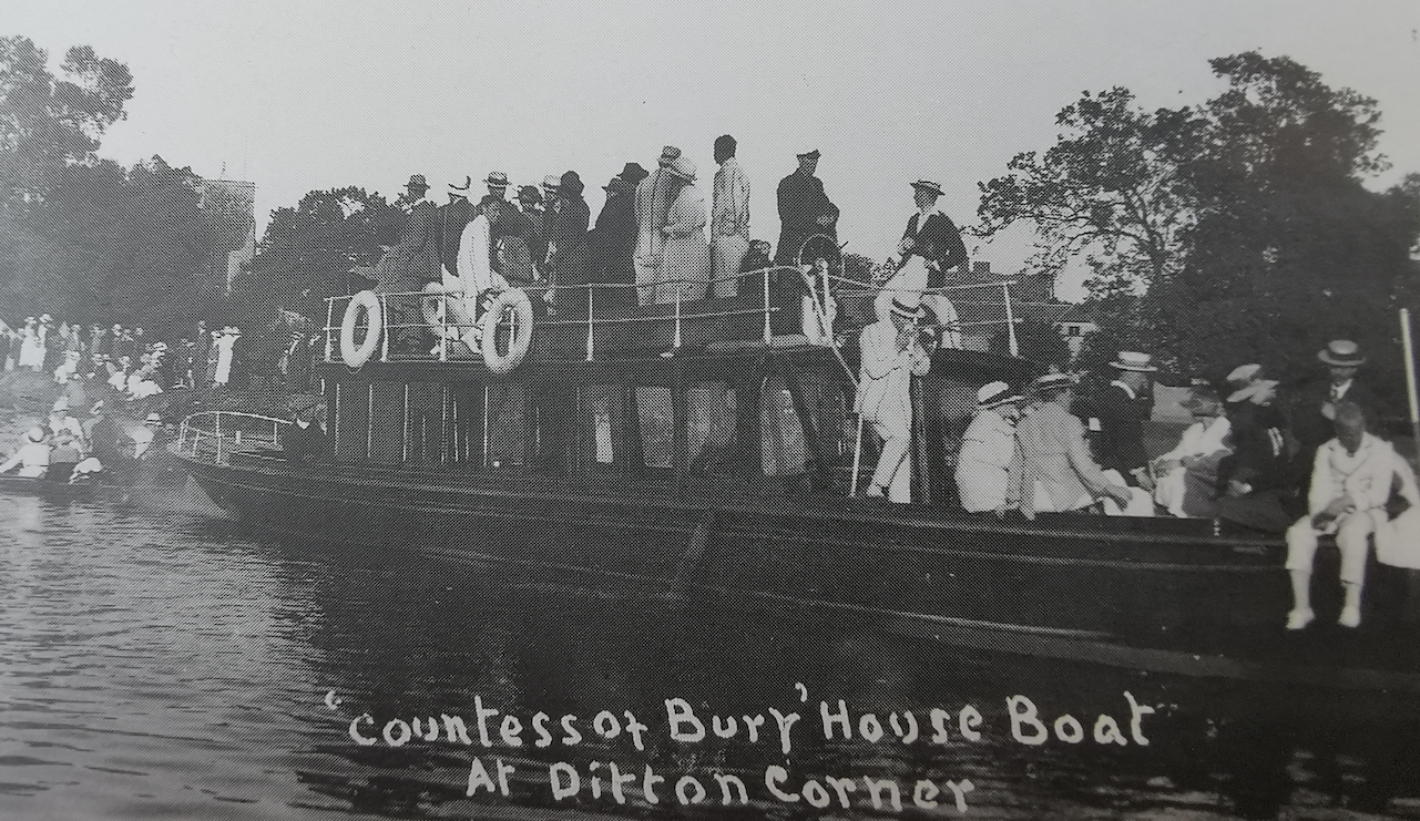 May 1920. Viscountess Bury pleasure cruiser at Ditton Corner.