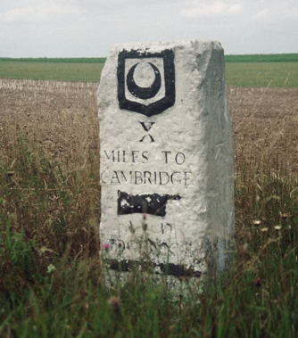 This is the site of the ‘Ten miles to Cambridge’ milestone.