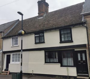 House, now two dwellings. Mid-late C16, and small C19 outshut at rear. … This may be the Guildhall which is referred to in documents prior to its dissolution c.1530. (Historic England)