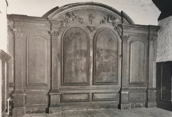Gamlingay, old school, reredors from a chapel in Hatton Garden, London c.1690 (RCHM)Listed Building