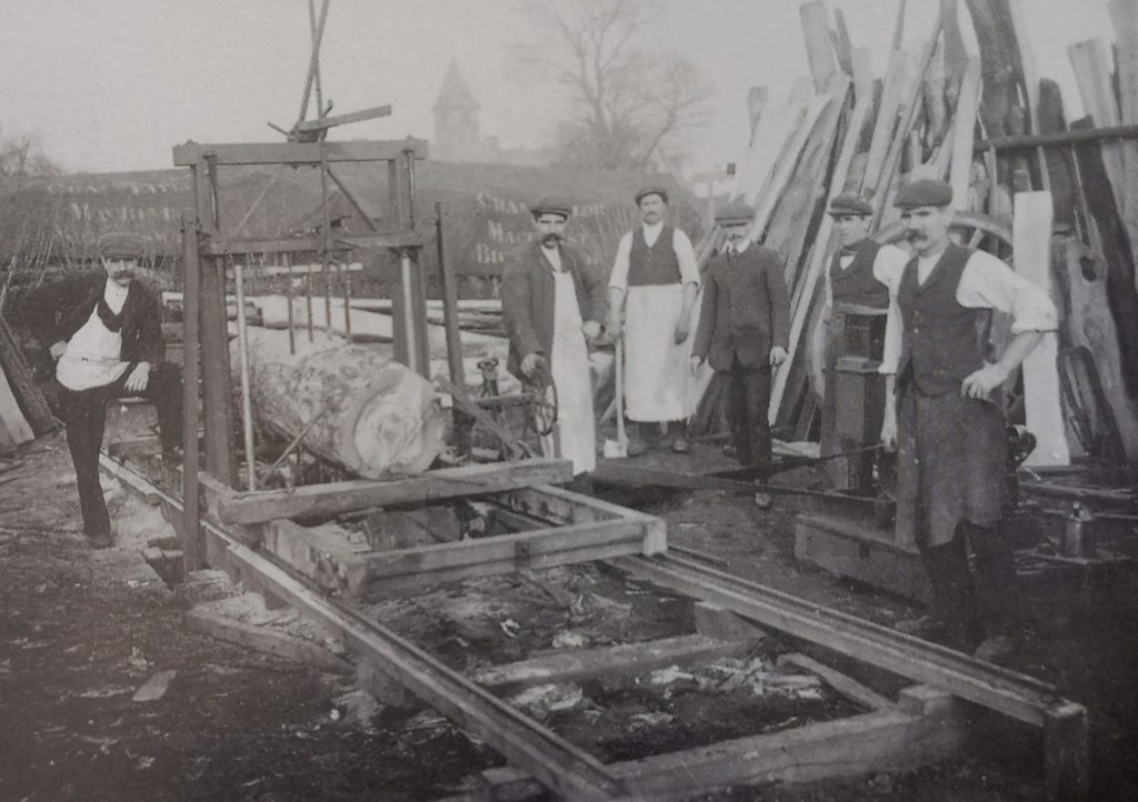 Wrights sawmill, Green End, Gamlingay c1900The photo shows brothers George, Albert and Arthur Wright, Sam Rainsford and George Hodge