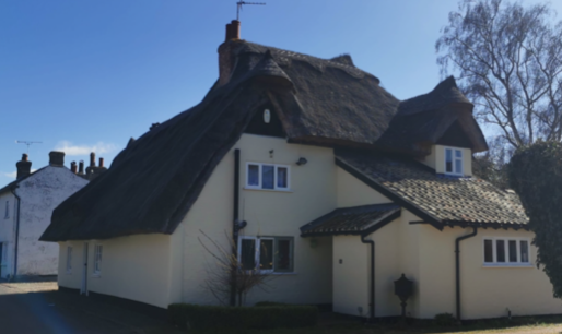 Cottage pre 1811 and mid C20. Timber framed, rendered with brick gable end and long straw thatch roof with stack part rebuilt at junction of front range and mid C20 rearwing.