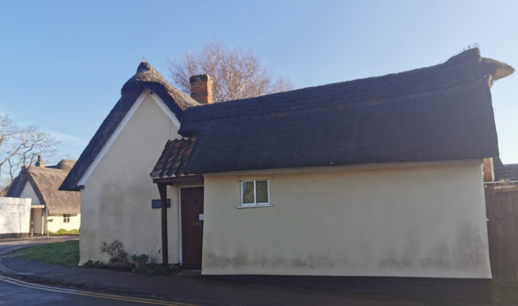 On the left of this photo, taken before 1924, can be seen the two south gables of Mistress Amy Smee’s house, 1670. To the right was the village pound.