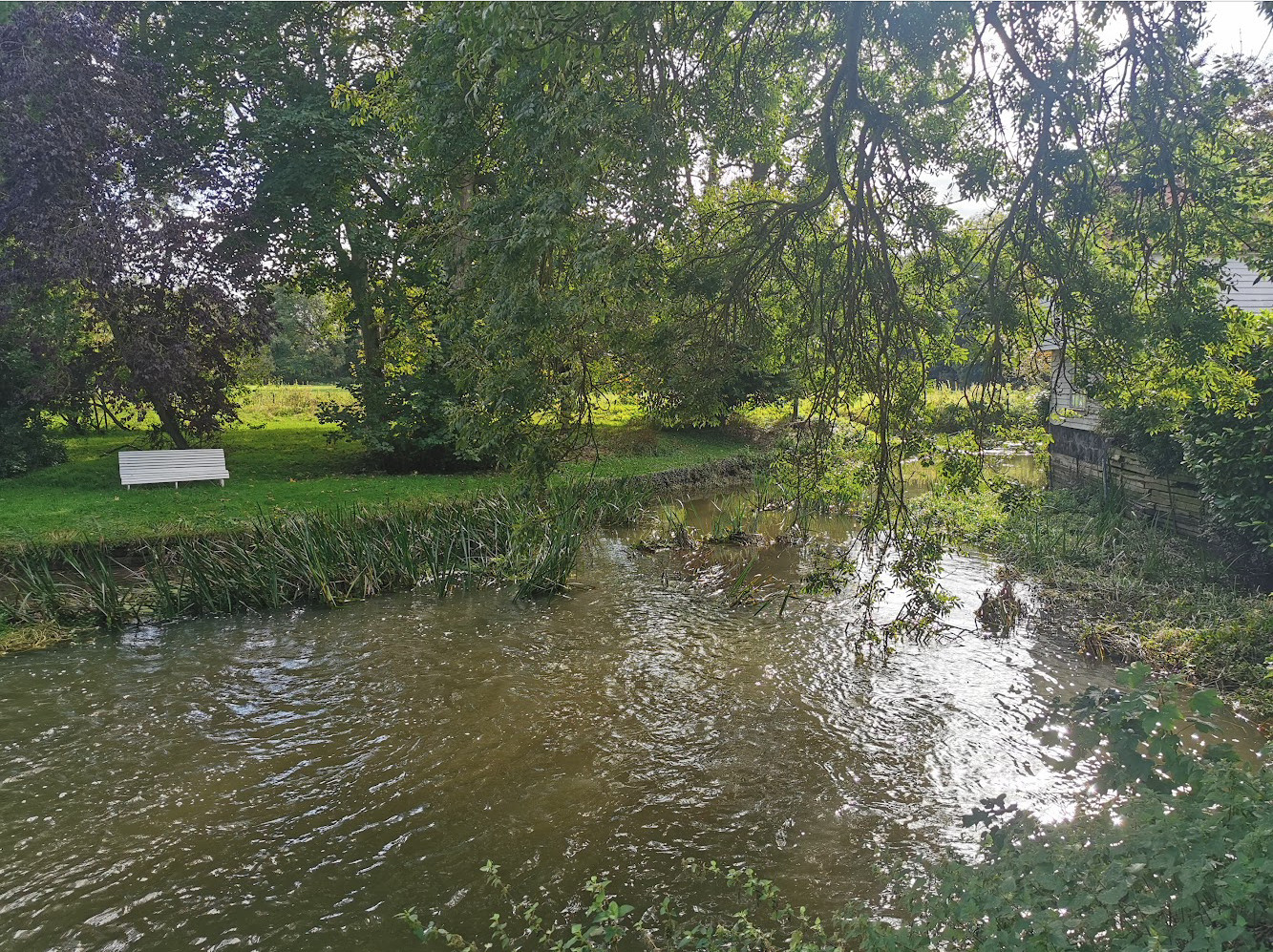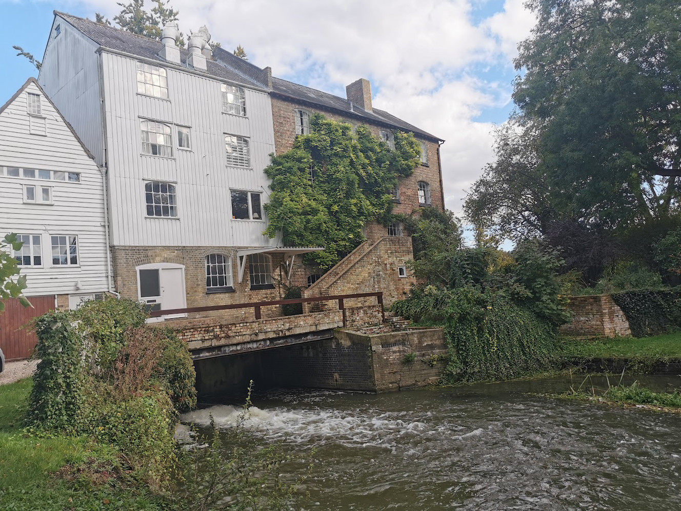 Watermill mainly late C19 but incorporating part of earlier mill of C17-C18 to the North. Now offices and dwelling house. Timber framed, weatherboarded and gault brick. C17-C18 part has steeply pitched pantiled roofs. Plan of main range spanning the mill race with a range to the north.