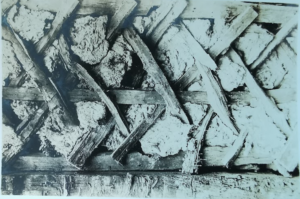 Guilden Morden Hall, March 1928, unusual lath plaster (MoC286/57)