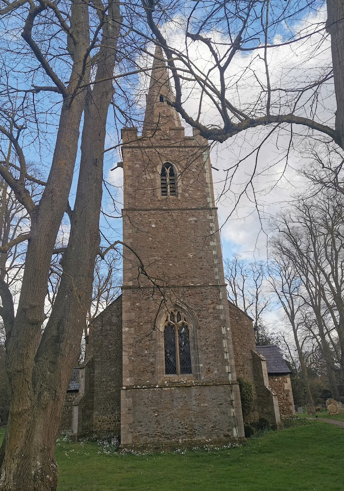 Parish Church. Late C14, nave, chancel, and tower with one notably earlier C14 chancel window. Restored in 1901 by Mr Rickett of Abingdon directed by Detmar Blow (1867-1939). (Historic England)