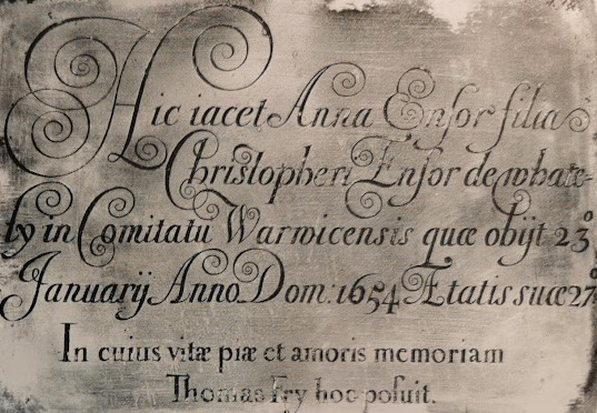 Brass of Anna Ensor, 1654, Haslingfield (RCHM)