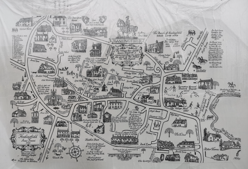 Haslingfield History map (in church yard)Detailed reminiscences of Haslingfield have been published by the Haslingfield Village Society: