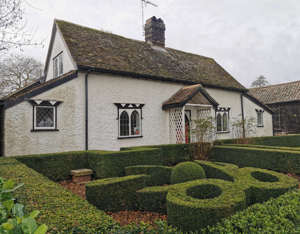 Cottage. c.1820. Timber-framed and plaster rendered with tiled roof and ridge stack.
