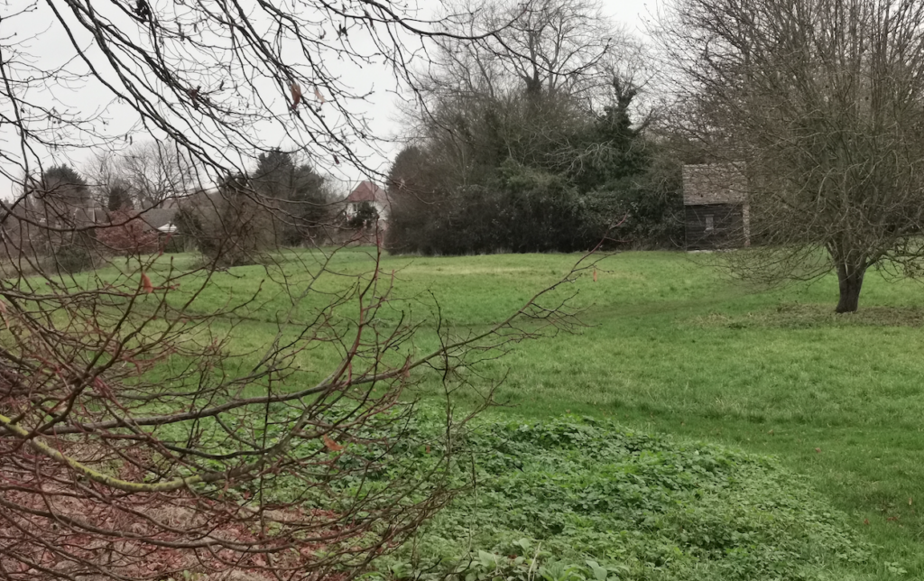 Wellhouse Meadow, HaslingfieldThe 17th century wellhouse was restored in 1978. The well is covered by an iron grille and behind are the remains of the moat. The park walls, dovecote and granary were erected during the restoration period.