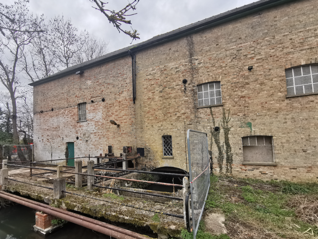 The position of a building suggests that the old bridge is the one adjacent to the mill, rather than that on the A10.
