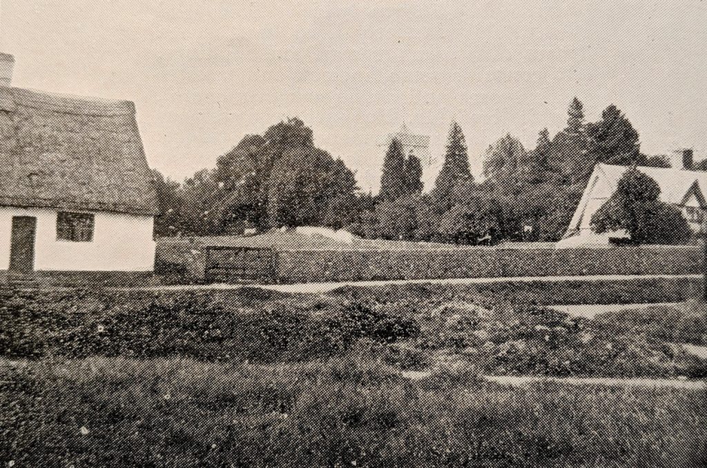 Dovehouse Meadow, Hildersham (WM Palmer)The photo of Doverhouse Meadow, taken before 1924, shows Samuel Sewell’s cottage on the left.