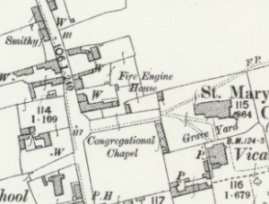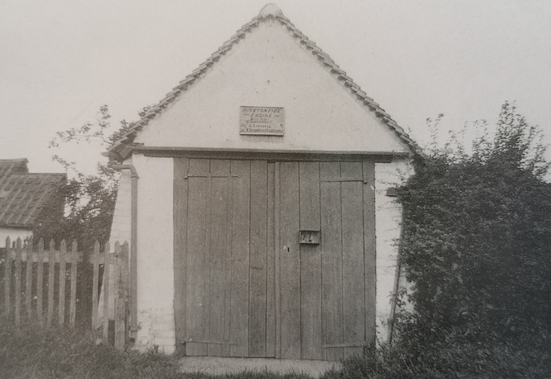 Fire Engine House, Hinxton, 1927 (Photo P S Palmer) (Cambridgeshire Collection)Sarah Stutter of Manor farm left £100 to the parish in 1830 to buy a fire engine which was shared with Ickleton. The pump was worked by two men on either side and when it was needed John Page, horsekeeper to Mr Robinson of Hinxton Hall, would fetch a horse to pull it. It was used in the disastrous 1921 fire which destroyed much of the summer harvest and equipment. (Vanishing Cambridgeshire p.123)