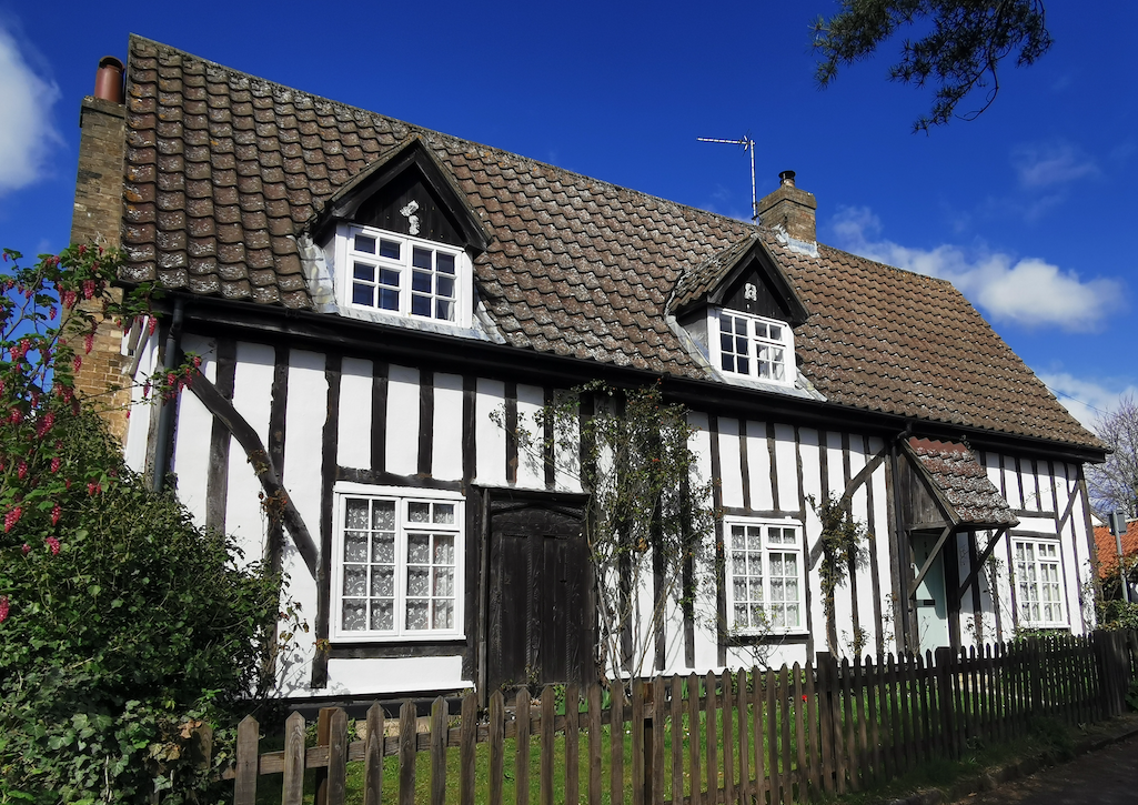House. Mid to late C16. Exposed timber frame, modern pantile roof, rebuilt ridge stack. Two storeys.