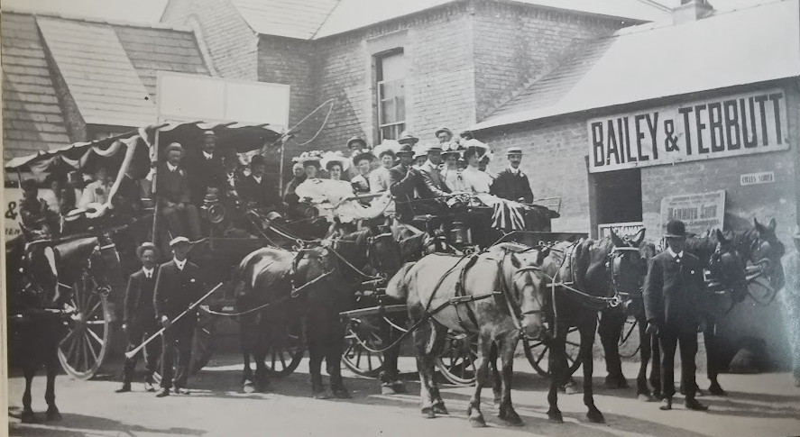 Conservative outing to Croxton park, 1909. Photo outside the Barley Mow, Histon (A Paige)