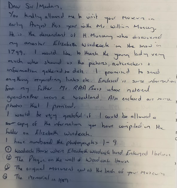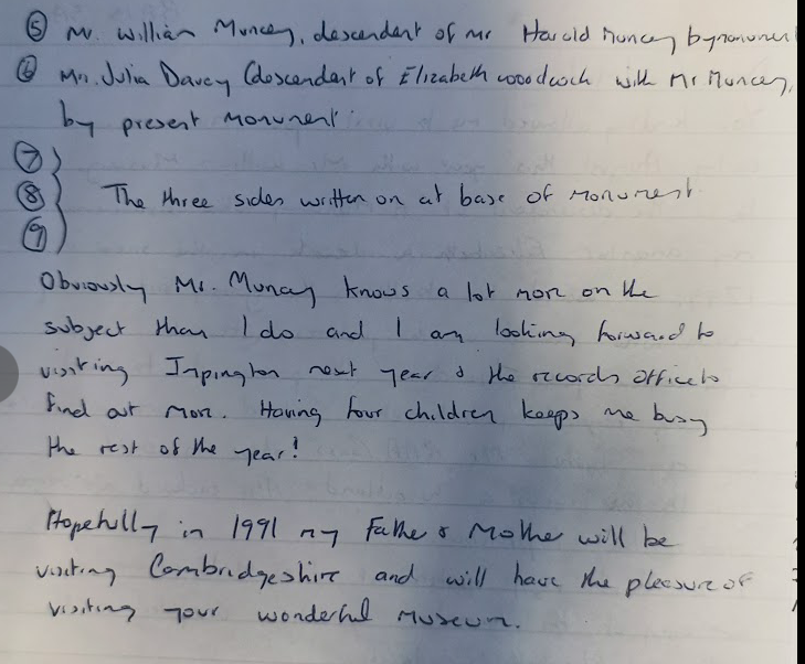 Letter 1990 re Elizabeth Woodcock & William Muncey