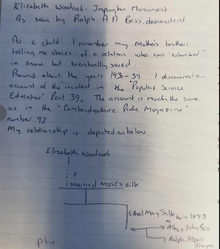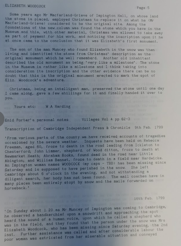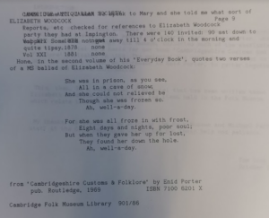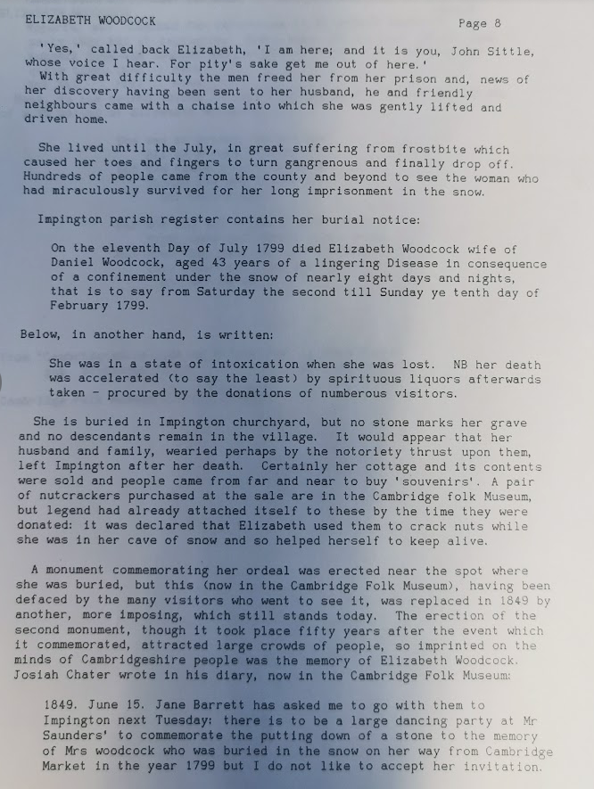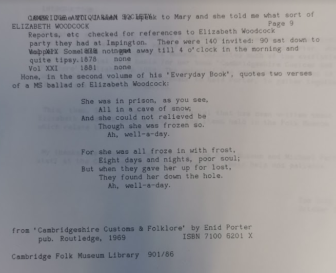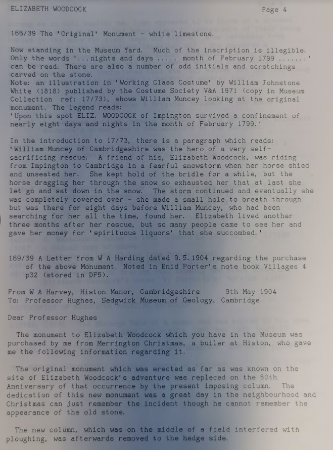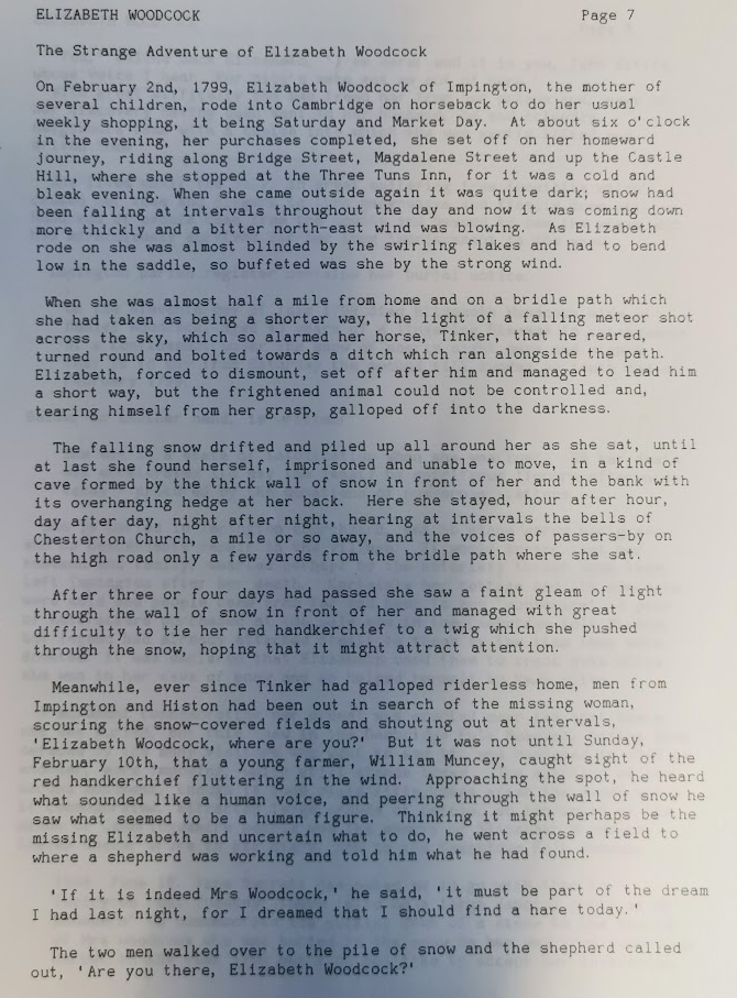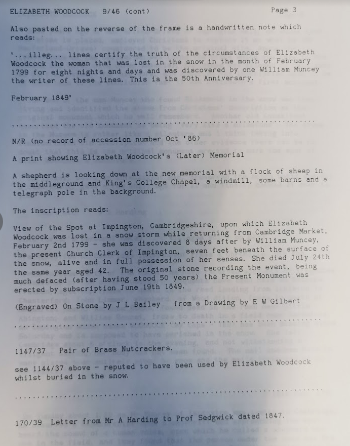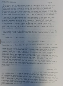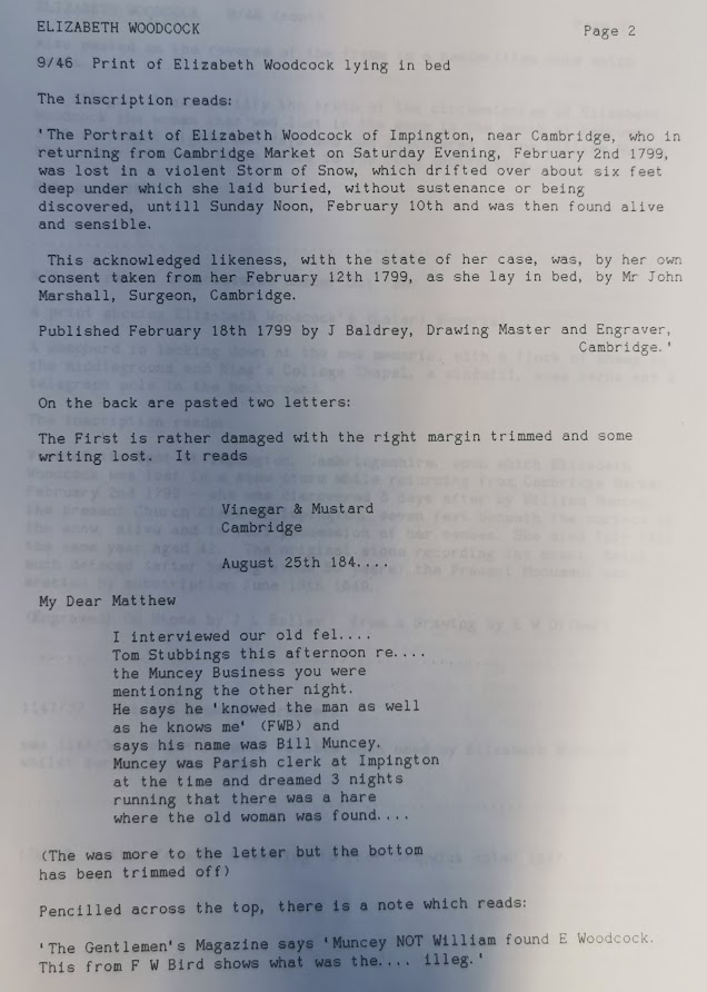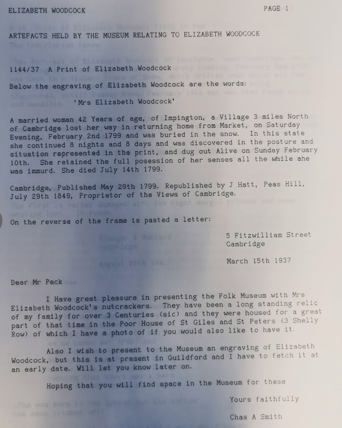 The Museum of Cambridge has collected a file of papers related to Elizabeth Woodcock over the years: